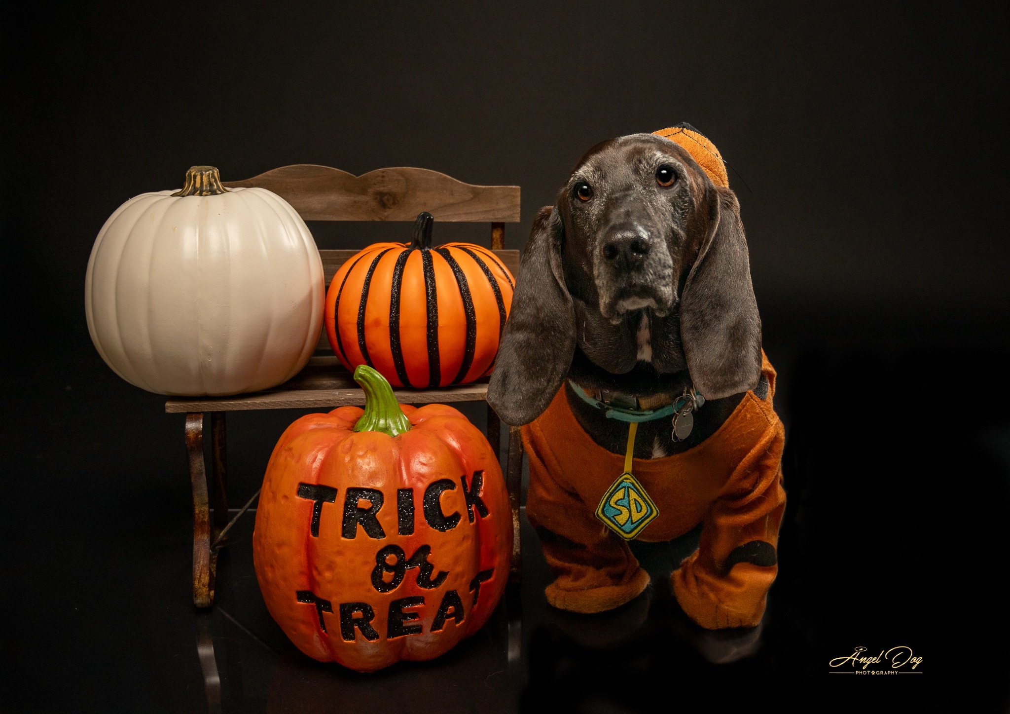 This time, we swapped beautiful outdoor views for a vibrant setting filled with pumpkins, props, and an array of costumes. The boarding and training center was transformed into a Halloween wonderland, creating an ideal backdrop for pets to showcase their spooky (or silly) sides. From angel-winged pups to dapper dogs dressed as candy or French toast, each pet brought its charm and character to the session.